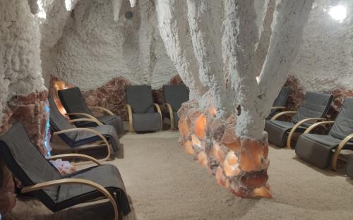 Соляная пещера представляют собой специально созданную комнату, облицованну натуральной солью. Воздух внутри этого помещения насыщен минералами и отрицательными ионами, которые положительно влияют на дыхательную систему и кожу человека. Посетители проводят время в таких пещерах, дышат чистым и очищенным воздухом, а также получают уникальные целебные свойства минералов.